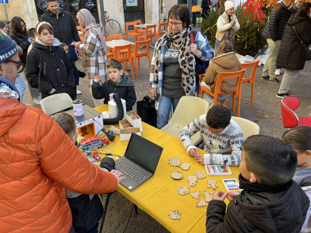 L’Association Fab’Lab proposait des objets de Noël pré-découpés et effectuait une gravure sur place au choix de l’enfant : Joyeux Noël, Merci Papy, etc…